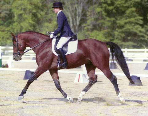 In this photo we have a horse whose trot has been severely manipulated by training and riding to meet a show class ‘look’. And not in a good way.