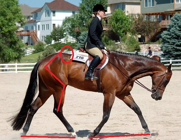 4) Right hind leg is going to land barely in front of the point of hip, when it should be landing under the rider’s seat.